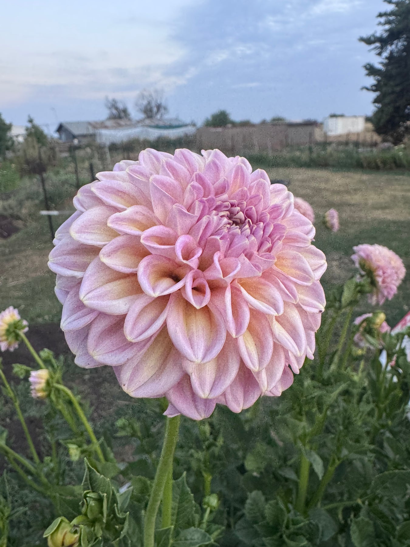 A small formal decorative baby to dusky pink - with touches of yellow. We won't have many this season - but we are propagating more for later in the year!
